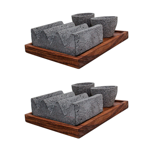 Especiero Tlatekpana de 8cm/3in de diámetro Juego De 3 Salseros/especieros De Piedra Volcánica Artesanal Con Base de Madera