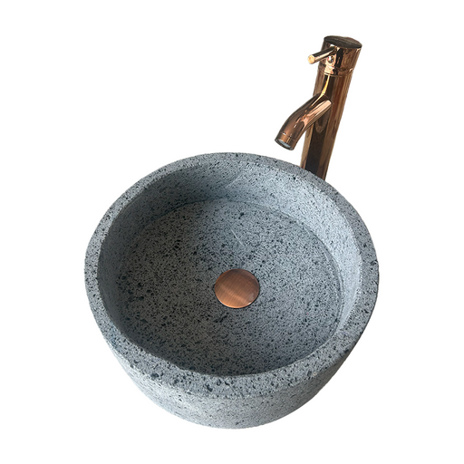 Lavabo de Piedra Volcánica de 35cm/13.7in de Diámetro, Ovalin de Piedra, lavabo para sobreponer