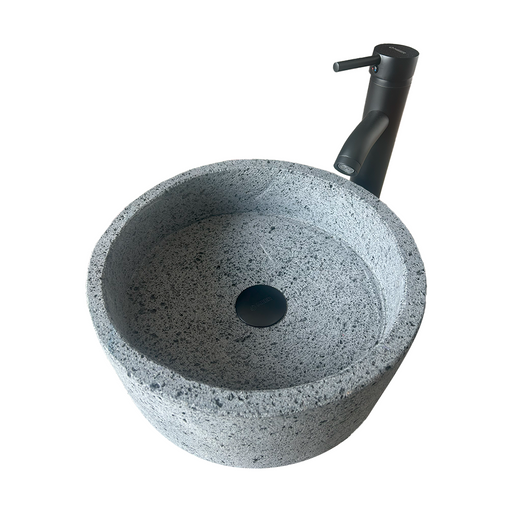 Lavabo de Piedra Volcanica Moderno de 35cm/13.7in de Diametero, Ovalin de Piedra