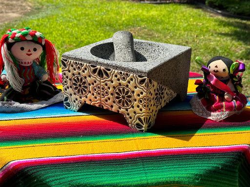 Chilmamolli de 25cm con base de madera y tapa de talavera